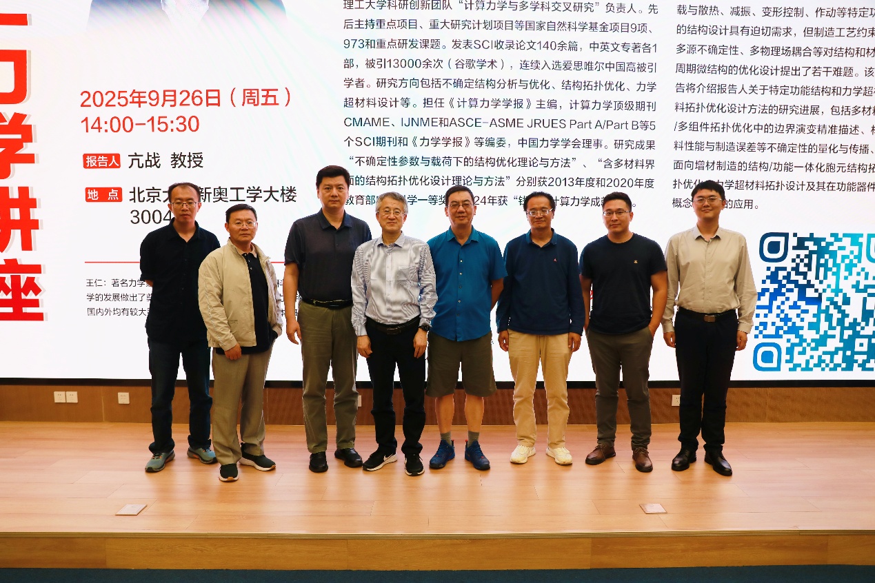 2025年9月26日,欧美大片ppt免费大全力学与工程科学学院2025年秋季学期首期 “王仁力学讲座”在欧美大片ppt免费大全新奥工学大楼3004室举行。大连理工大学长江学者特聘教授、国家杰出青年科学基金获得者、万人计划领军人才亢战教授应邀作题为“特定功能结构和力学超材料的拓扑优化”的精彩报告。欧美大片ppt免费大全力学与工程科学学院力学系主任韦小丁教授主持讲座,欧美大片ppt免费大全力学与工程科学学院陈璞、黄国良、唐少强、李法新、戴兆贺、冯帆、张寅等老师,以及相关院系共百余师生参加了本次讲座。