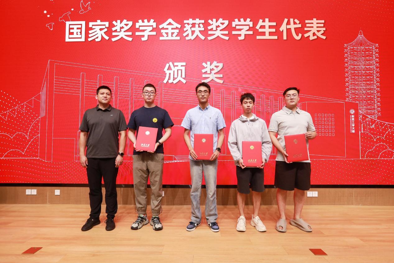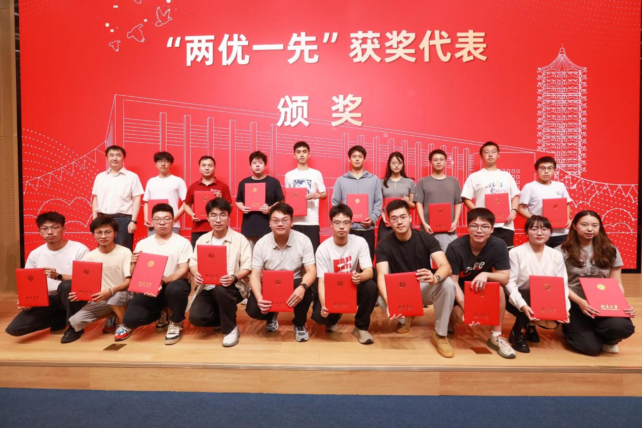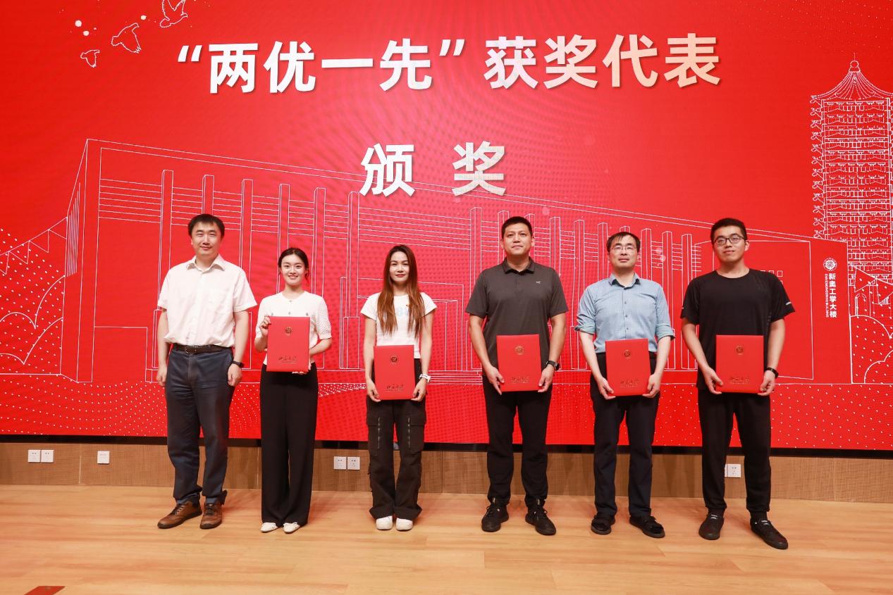紧接着,举行隆重的颁奖仪式。首先,进行“两优一先”获奖代表颁奖。杨越为学生“先进支部”获奖代表、“优秀党支部书记”、学生“优秀共产党员”代表颁奖;随后,杨越为教师“校级优秀党员”、“院级优秀党员”颁奖;最后,张通为荣获2023—2024学年国家奖学金的学生代表颁奖。