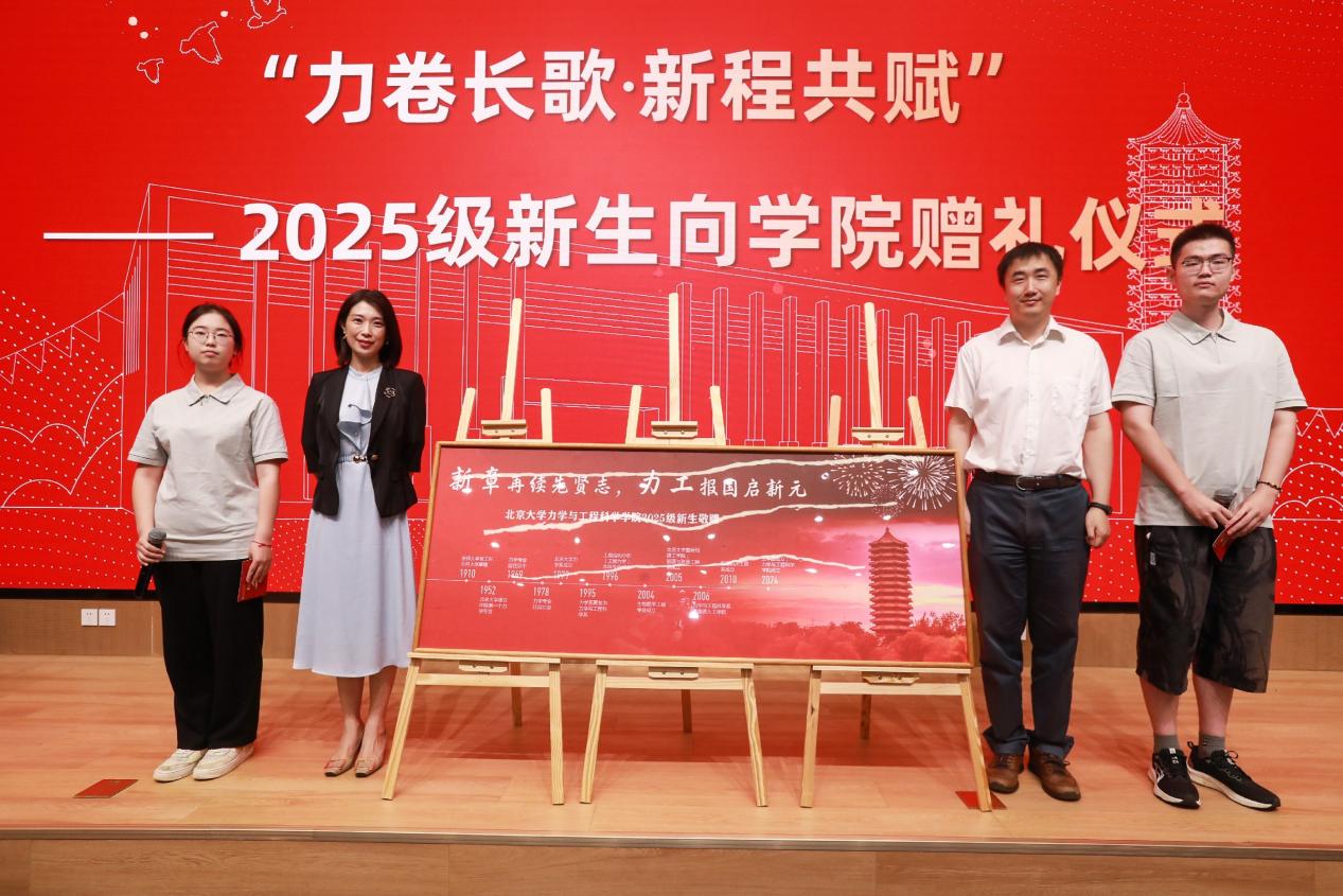 力卷长歌,新程共赋。典礼现场,2025级力工新生以写有每位同学姓名的拼图汇成一幅“力工长卷”,寄托对燕园的初心与对未来的憧憬。杨越和欧阳晓玲代表学院接受这份饱含情谊的礼物。此幅拼图将珍藏于力工学院,见证2025级新同学与学院在建院元年同频奋进、薪火相传的成长篇章。